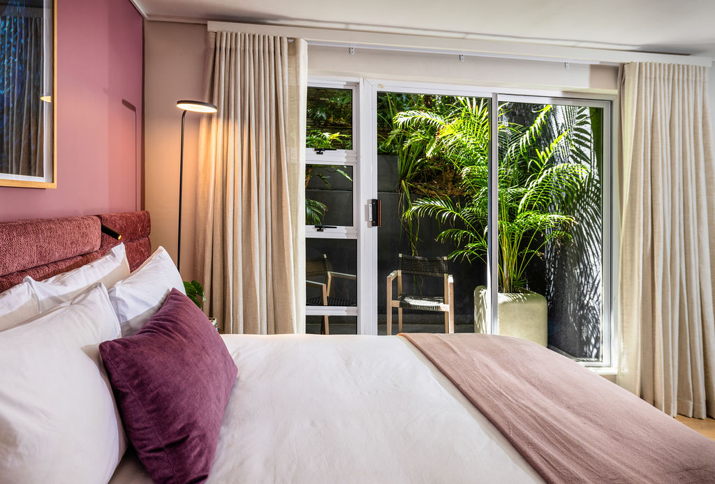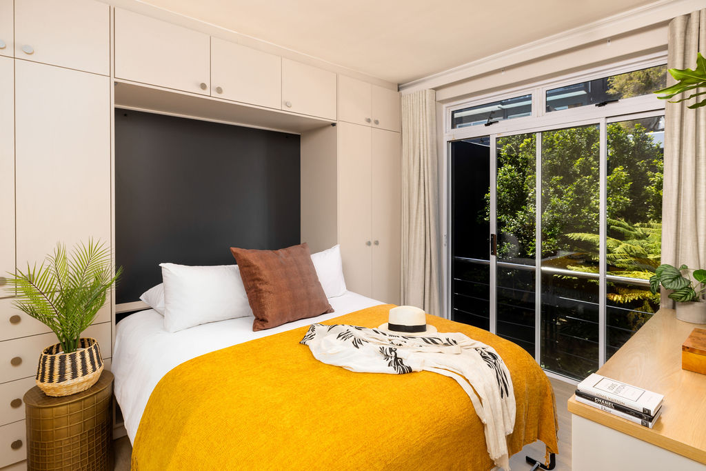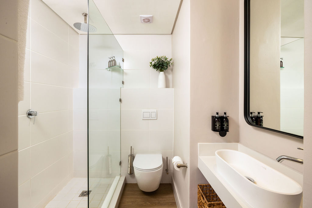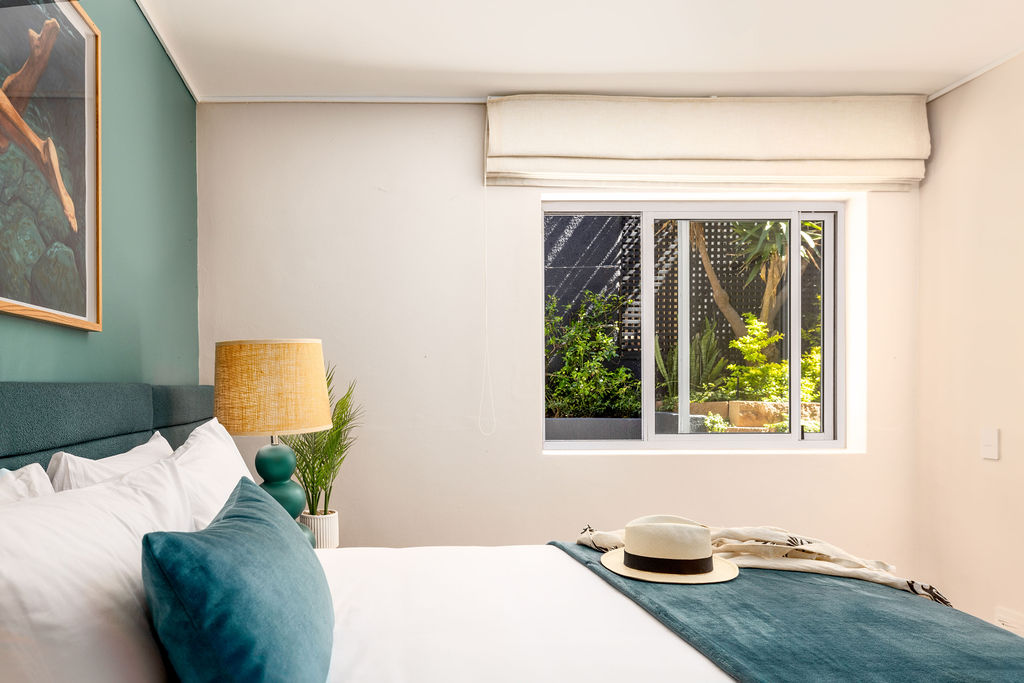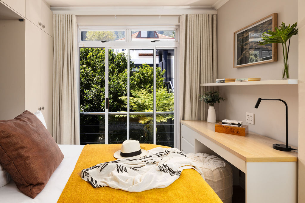 - Bedroom 2 – Queen size bed, dedicated bathroom with a shower. Sliding door leads to small courtyard and garden view.