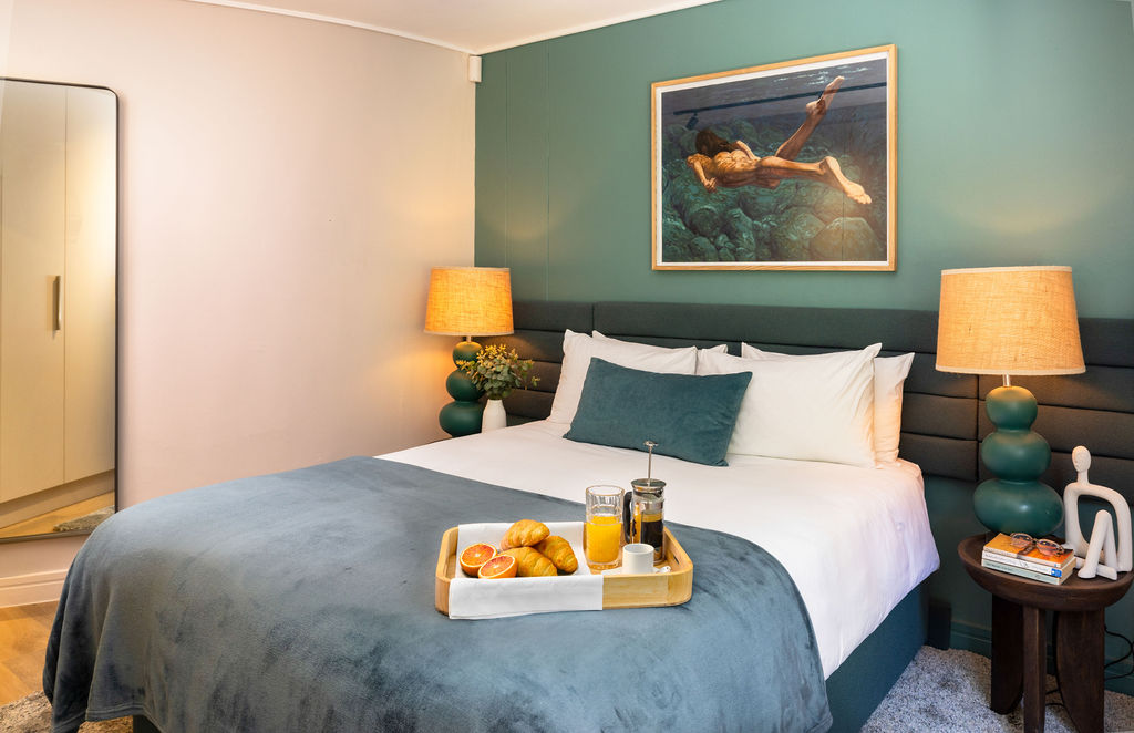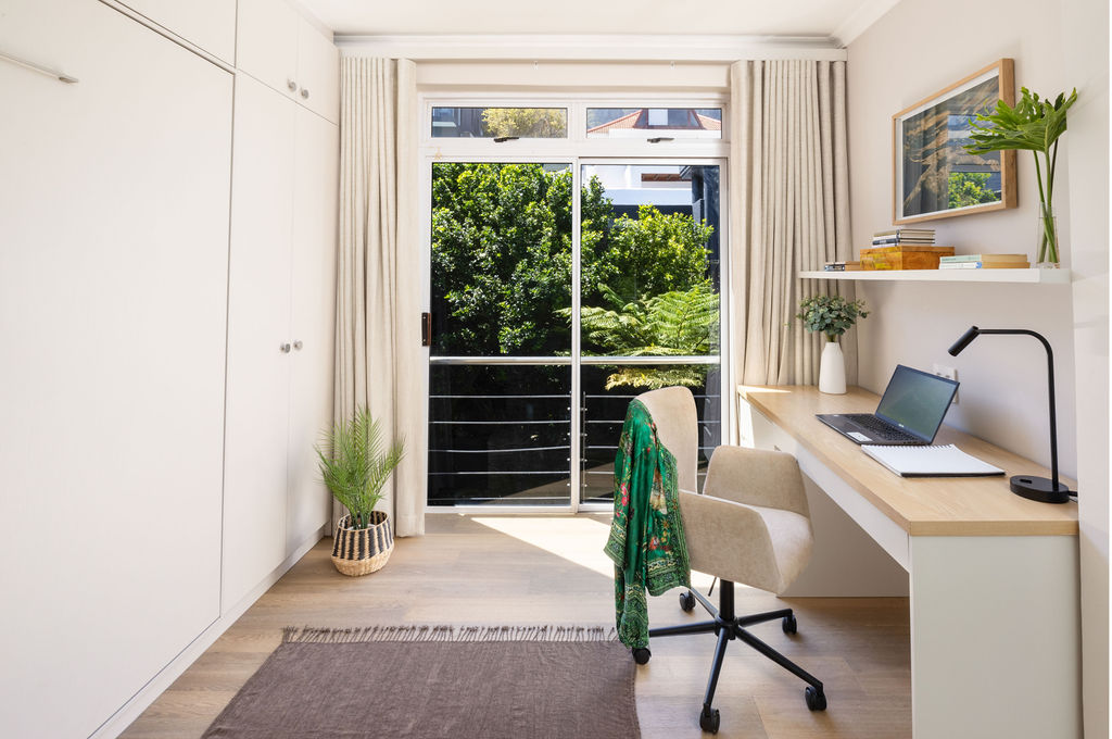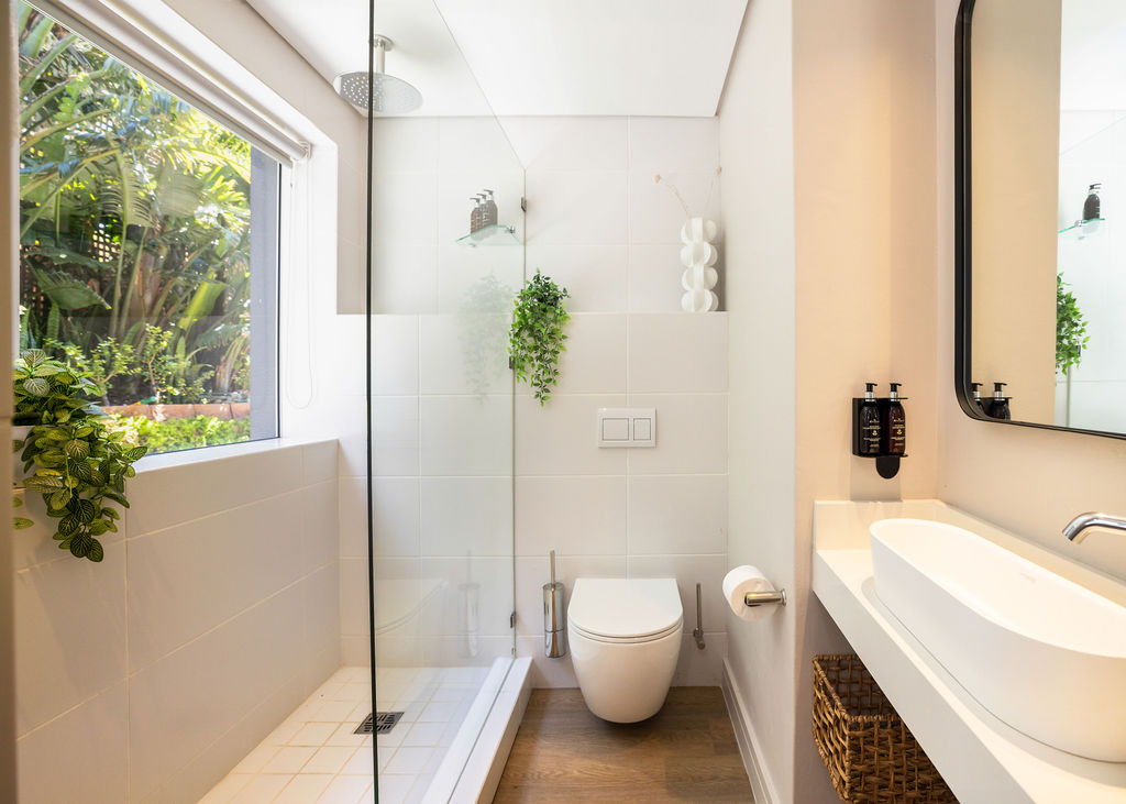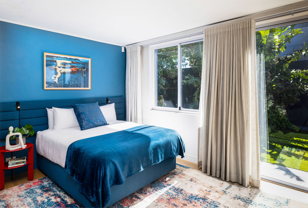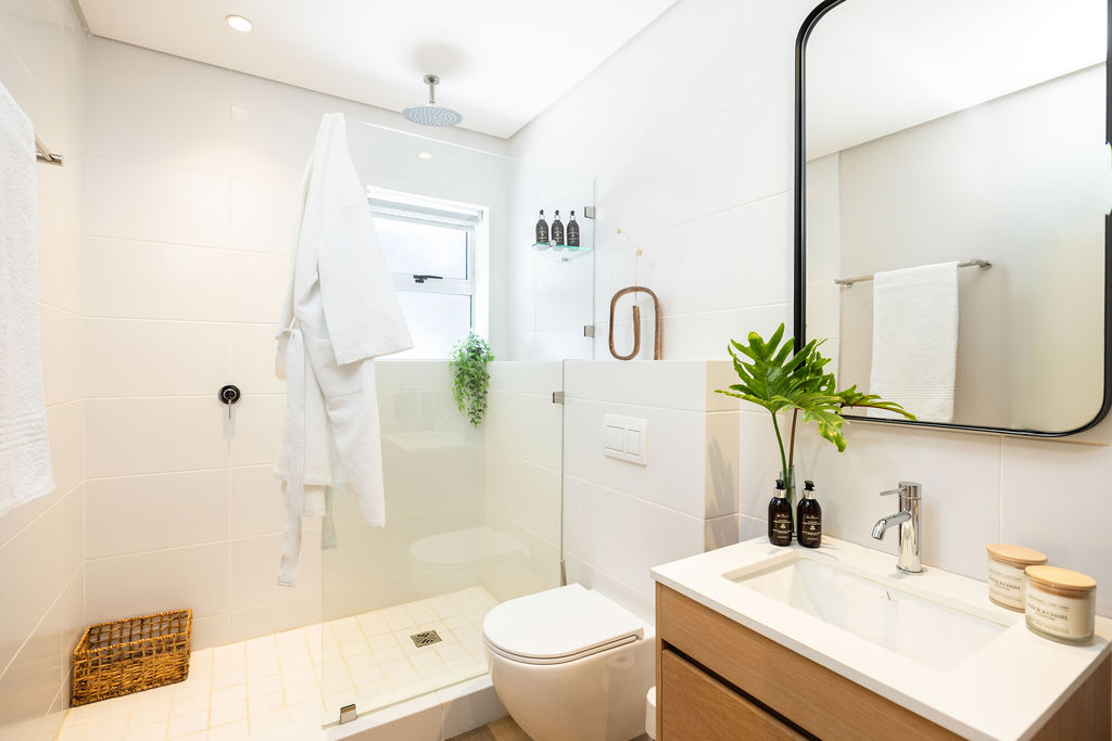 - Bedroom 2 – Queen size bed, dedicated bathroom with a shower. Sliding door leads to small courtyard and garden view.