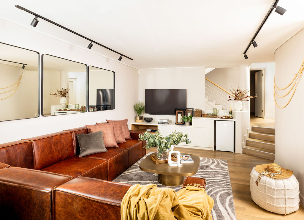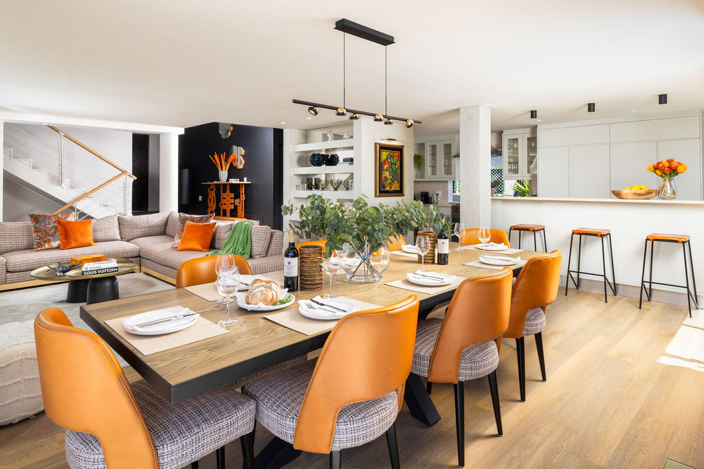 - Open plan lounge with 63-inch Smart TV and large L-shaped couch
